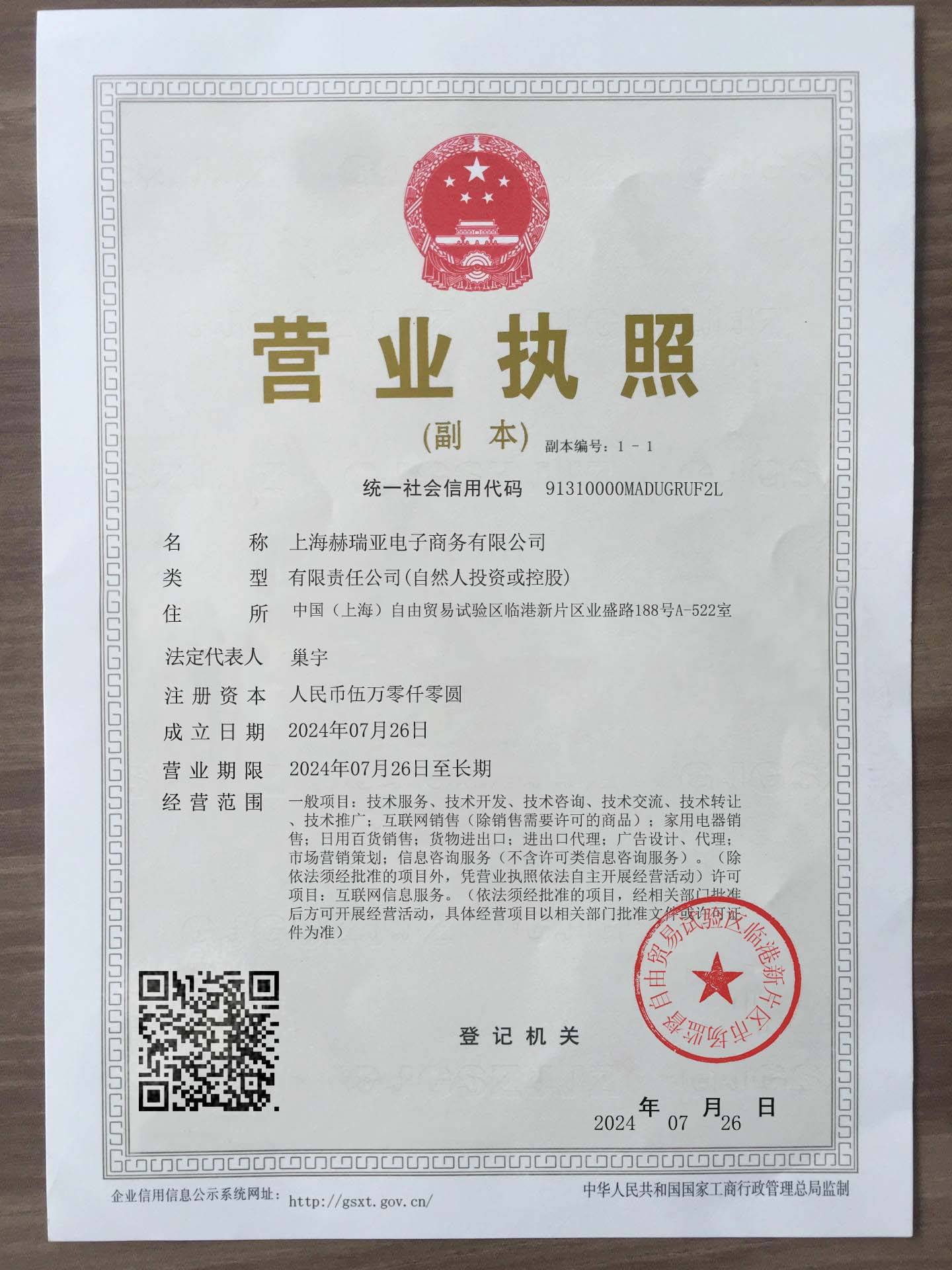 상하이 헤레야 전자상거래 유한회사는 역동적이고 혁신적인 전자상거래 기업입니다. 중국(상하이) 자유무역시범구 임강신구에 본사를 두고 있으며, 탁월한 서비스와 고품질 제품으로 고객의 신뢰를 쌓아 왔습니다. 저희의 목표는 편리하고 효율적이며 즐거운 쇼핑 경험을 제공하여 일상 쇼핑을 위한 최고의 플랫폼이 되는 것입니다.